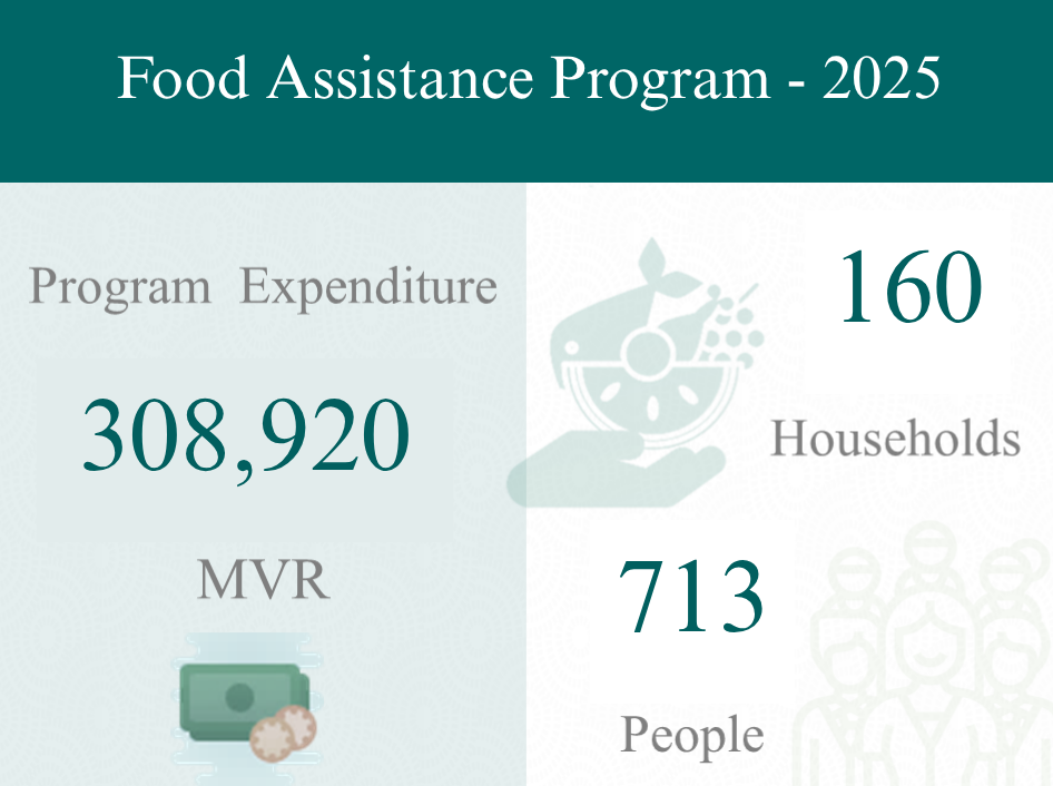 The Food Assistance Program is a targeted conditional cash transfer program implemented under the Social Protection Act (2/2014), providing financial support to vulnerable people to purchase staple foods. The financial assistance provided under this program is specifically to purchase Rice, Flour and Sugar