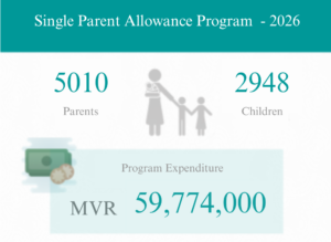 Eligible single parents registered in the program are paid a monthly allowance of MVR 1000 per child (below 18 years of age), up to a maximum of MVR 10,000.